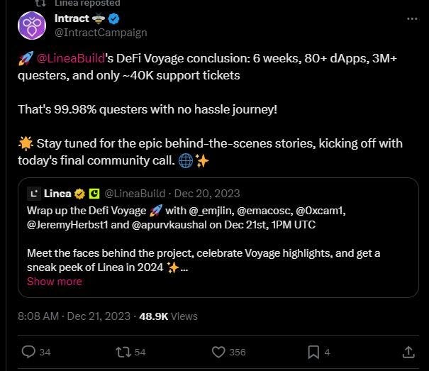 Since the testnet phase, Â Linea has organized various events to advance community growth and encourage the development of test applications. The most comprehensive of these events is "The Linea Voyage". This system, which distributes Linea Voyage xp to users, subjects many users to various tasks to actively use the chain. For example, "go to IZUMI Finance and make a swap of $10 or more" Although this system has attracted the attention of airdrop hunters, there are also users who criticize it.